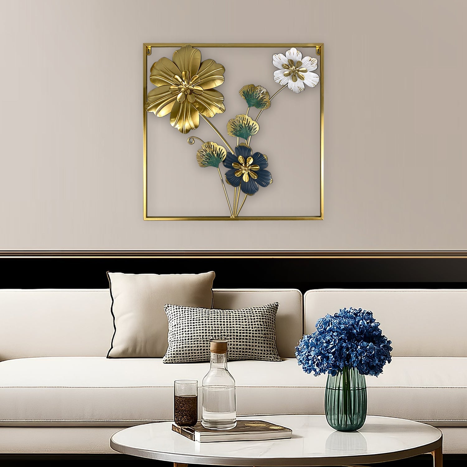 Square 3D Metal Flower Frame Wall Art - Decorative Frame for Home & Office in Multiple Sizes